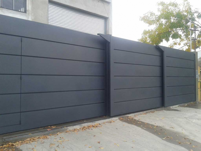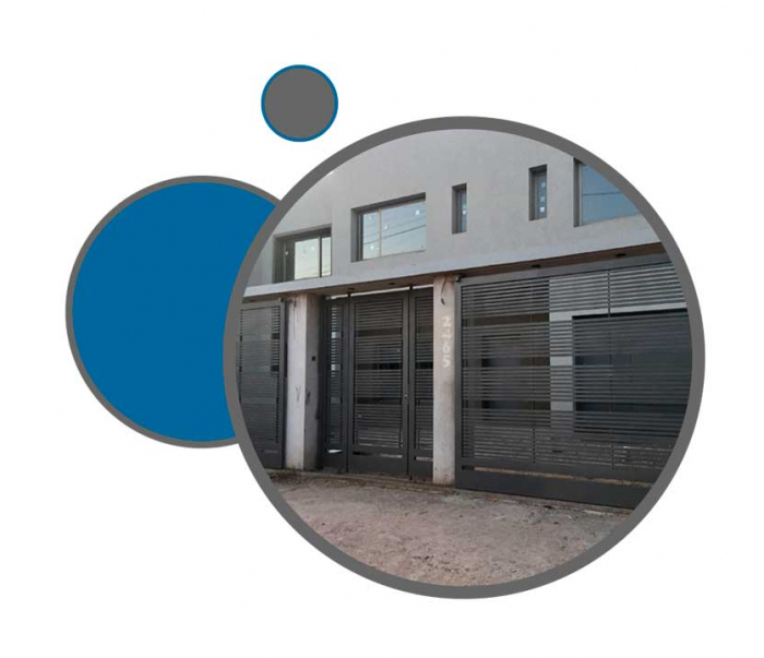De gran practicidad. Nuestros portones son estructuralmente sólidos, y se desplazan de forma muy suave y liviana. Debido a la utilización de rodamientos en hierro macizo montado en rulemanes blindados y guías de primera calidad.