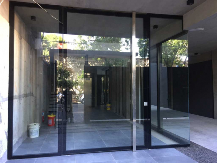 Realizamos su frente en distintos revestimientos, integrando puertas, portones, paños fijos, etc.